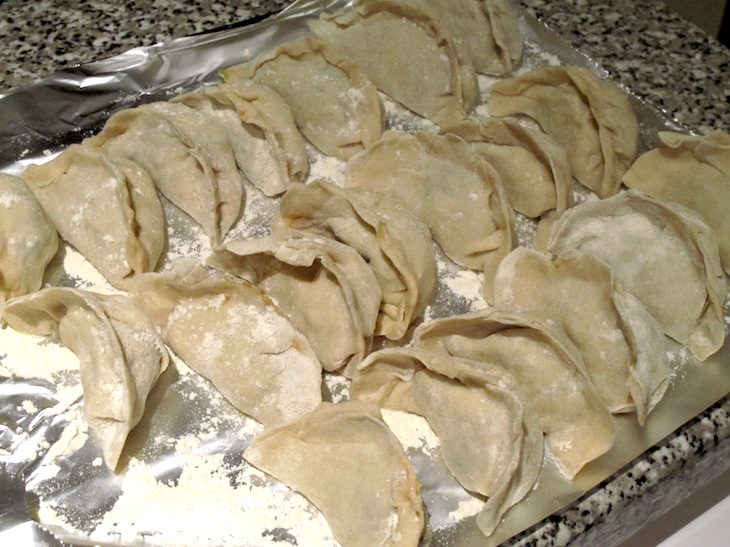 然后我只好改Plan B了——和中筋面粉,改做饺子!其实二厨在江西的时候,还和当地学生做过饺子,而大厨大Joy由于一直讨厌吃饺子,这辈子除了小时候拿筷子在我爹旁边假模假式地擀过几个饺子皮之外,就没有参与过了哈。