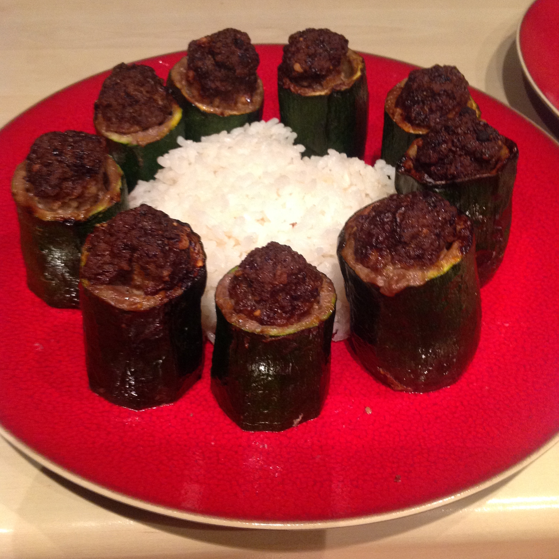 晚饭是牛肉feta奶酪瓤zucchini!