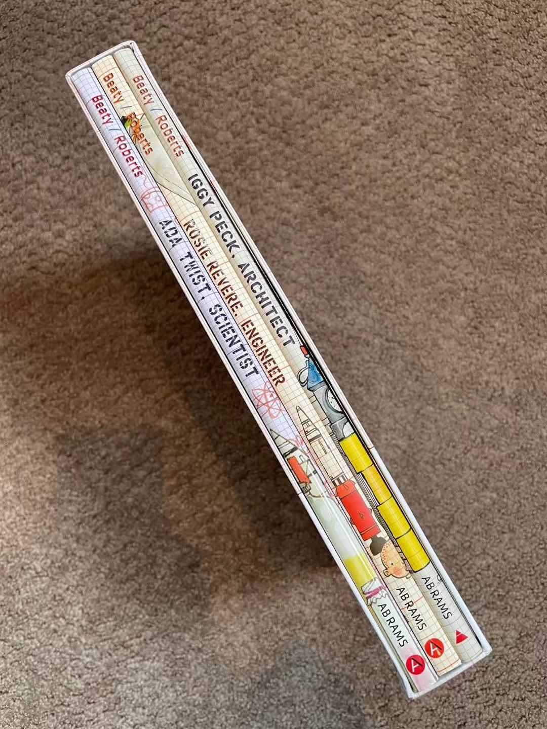 我记得我小时候比较高级的读物是《十万个为什么》,但其实强调的是“涨知识”;现在时髦的是“问问题”,这个Andrea Beaty 和 David Roberts合作的“Questioneers”系列,写各种小孩对理科的探索。很不错哎!除了理科,还有“社科”版的Sofia Valdez, Future Prez哎!