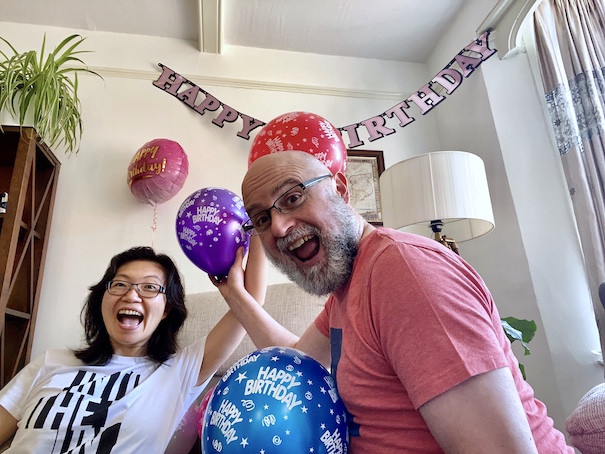 这T恤其实是去年买来讲风险和生物安全那节课的,很切题吧!但由于新冠一直也没当面授课,所以一直在衣柜里囤着,那天翻出来觉得,哎,生日穿也蛮对路子的嘛!