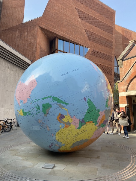 LSE校园里不再有书店这件事我觉得还是挺遗憾的,但他们同时推掉了书店前巨难看的企鹅和大象的雕塑,我也就心理平衡了。校园口新建了一个雕塑,是个倒置的地球。